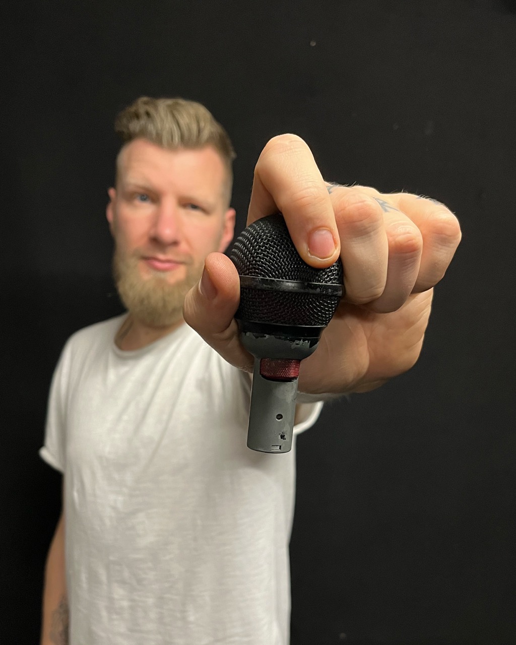 Eriks altes Mikrofon, voll funktionsfähig und noch in 2023 genutzt. Hier stecken Schweiß, Farbe und Tränen von unserem Frontmann drin.