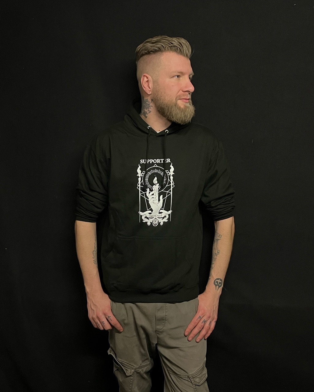 Fehldruck “Todsünde Supporter”, der Hoodie und Druck hat top Qualität, ist leider nur etwas klein geraten.