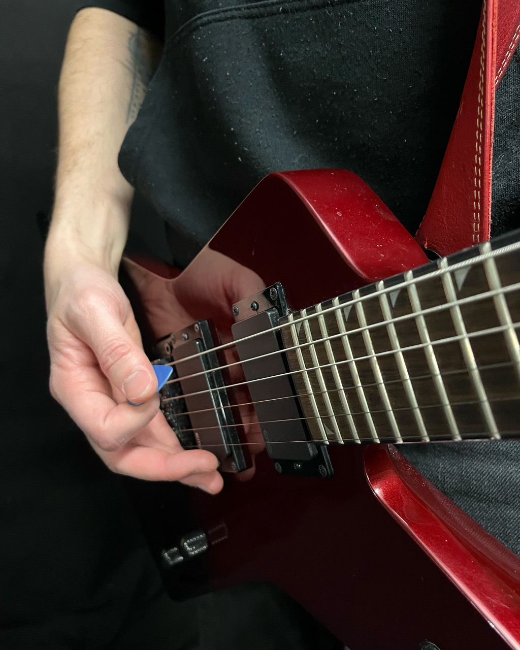 Colin und Sascha geben auf der Bühne alles, da kann auch mal eine Saite reißen. Hier erzählst du eine Gitarren-Saite von uns.